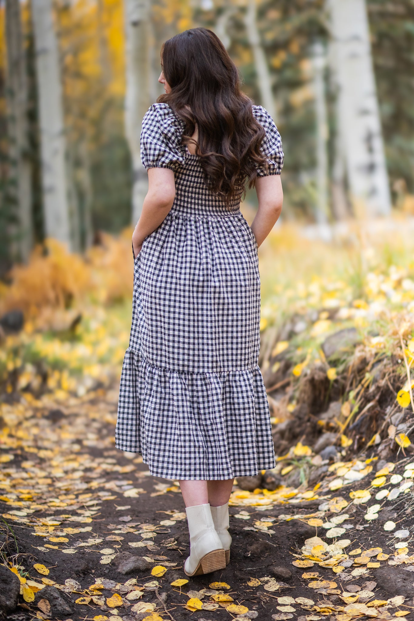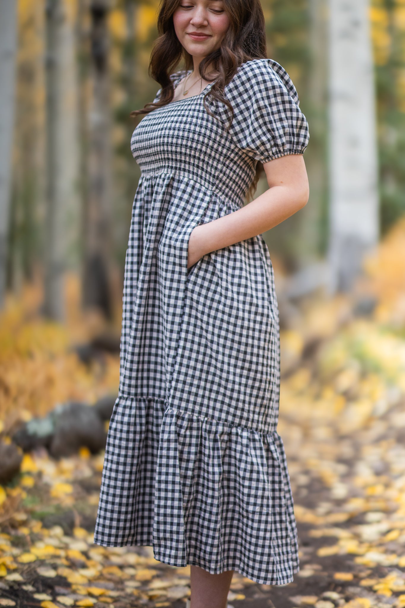 Whispers of autumn weave through every thread of The Odette. Crafted in soft gingham cotton, this charming midi dress captures the essence of quiet moments — golden leaves beneath your feet, a cool forest breeze, and the warmth of a cozy afternoon. With its smocked bodice, puffed sleeves, and flowing silhouette, Odette feels like a love letter to the simple, beautiful days of fall. Pair it with your favorite boots and a cozy cardigan for a touch of romance this season. 🍂